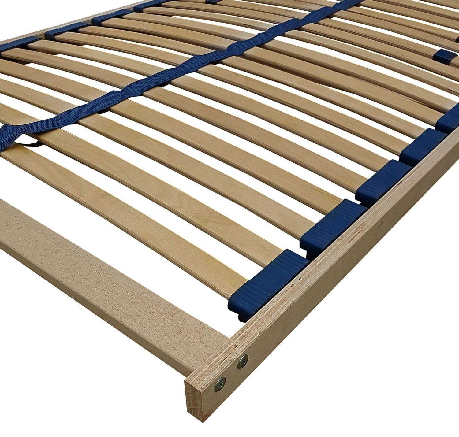 Hochwertiger Lattenrost mit individuell im Härtegrad einstellbarer Beckenzone zur Entlastung des Lendenbereichs.
