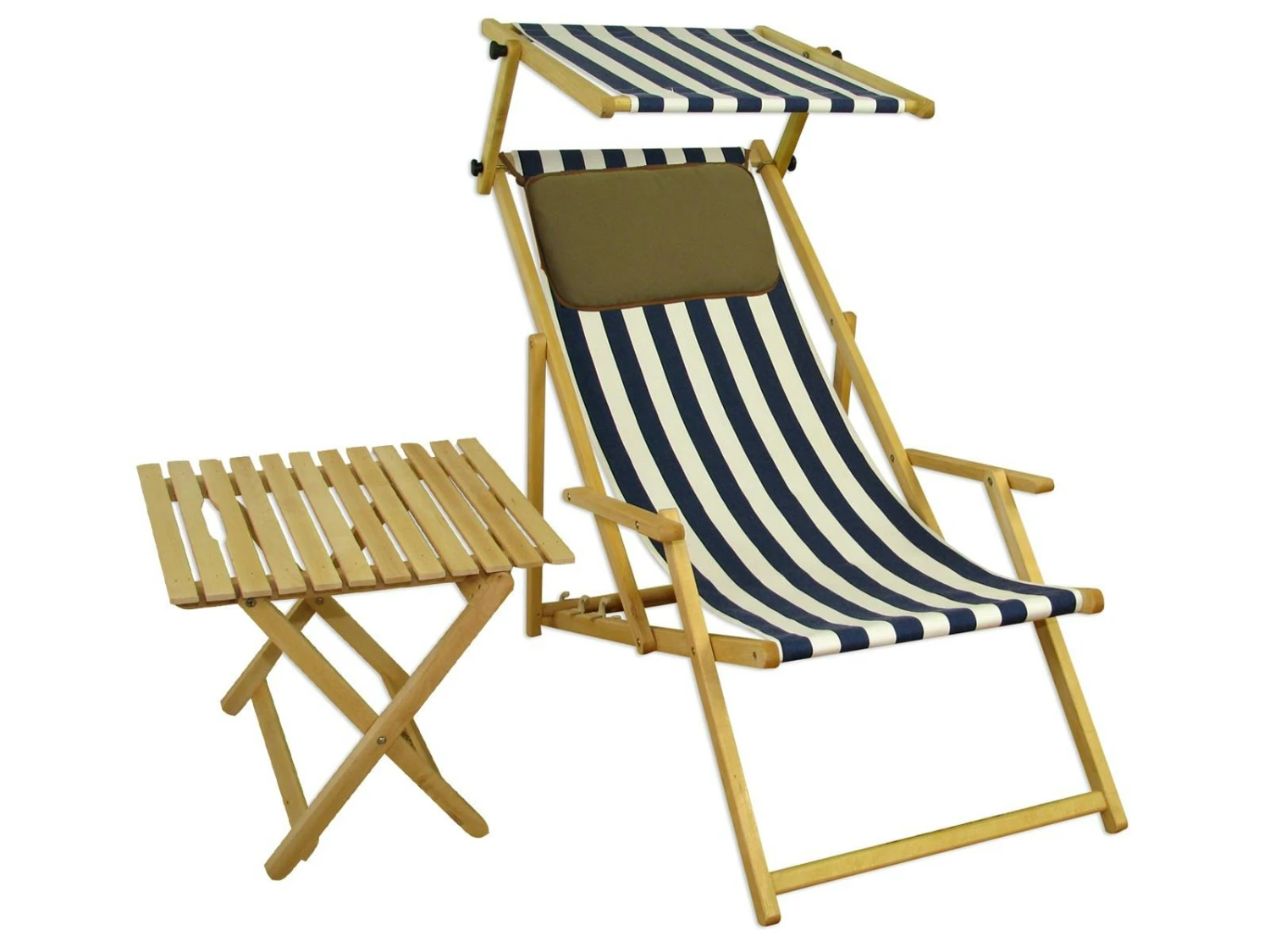 mit Beistelltischmit Kissen (ohne Deko) Naturprodukt Holz… logisch Beschreibung:Die gemütliche Sonnenliege für Ihre Terrasse ist aus Buche gefertigt. Buche zeichnet sich durch besondere Festigkeit aus.Das Holz der Gartenliege stammt aus schonend bewirtschafteten Forsten mit nachhaltiger Bewirtschaftung ohne Fremdstoffe.Der Liegestuhl ist natur geölt und wetterfest.Die Gartenliege lässt sich dank Markenbeschlägen mit Sicherungssystem in 3 Positionen verstellen.