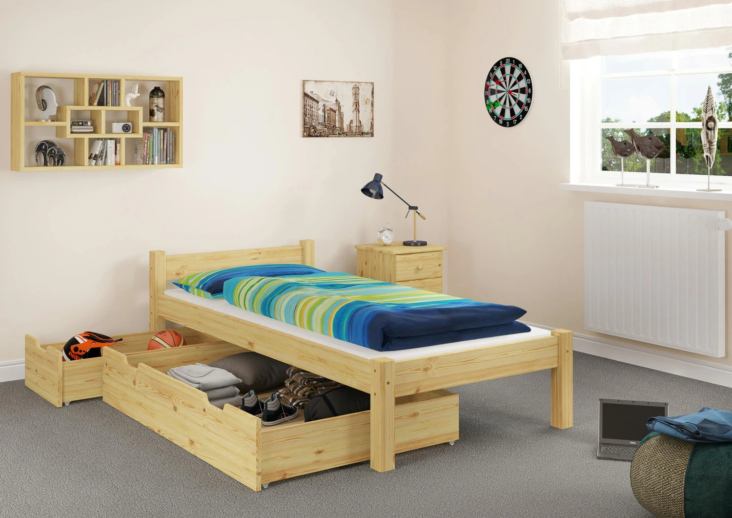 Für das Bett gibt es als passendes Zubehör Stauraum-Boxen: Artikel 90.10-S5 und 90.10-S5-2