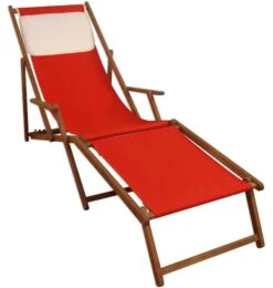 Liegestuhl Rot Fußablage Kissen Deckchair Klappbar Sonnenliege Holz Gartenliege 10-308 N F KH