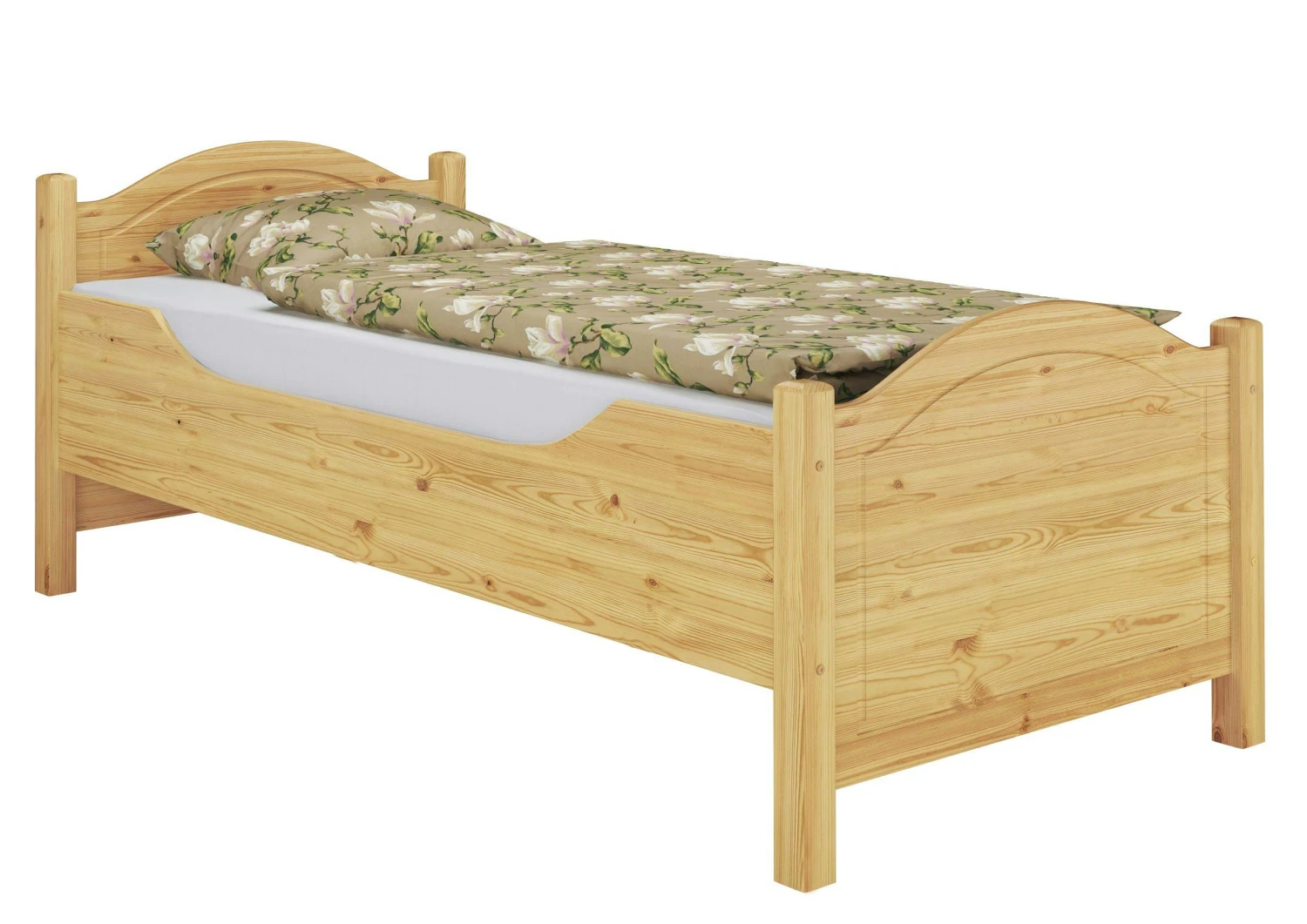 Das Einzelbett ist solide verarbeitet, die Oberfläche fein geschliffen und natur lackiert.